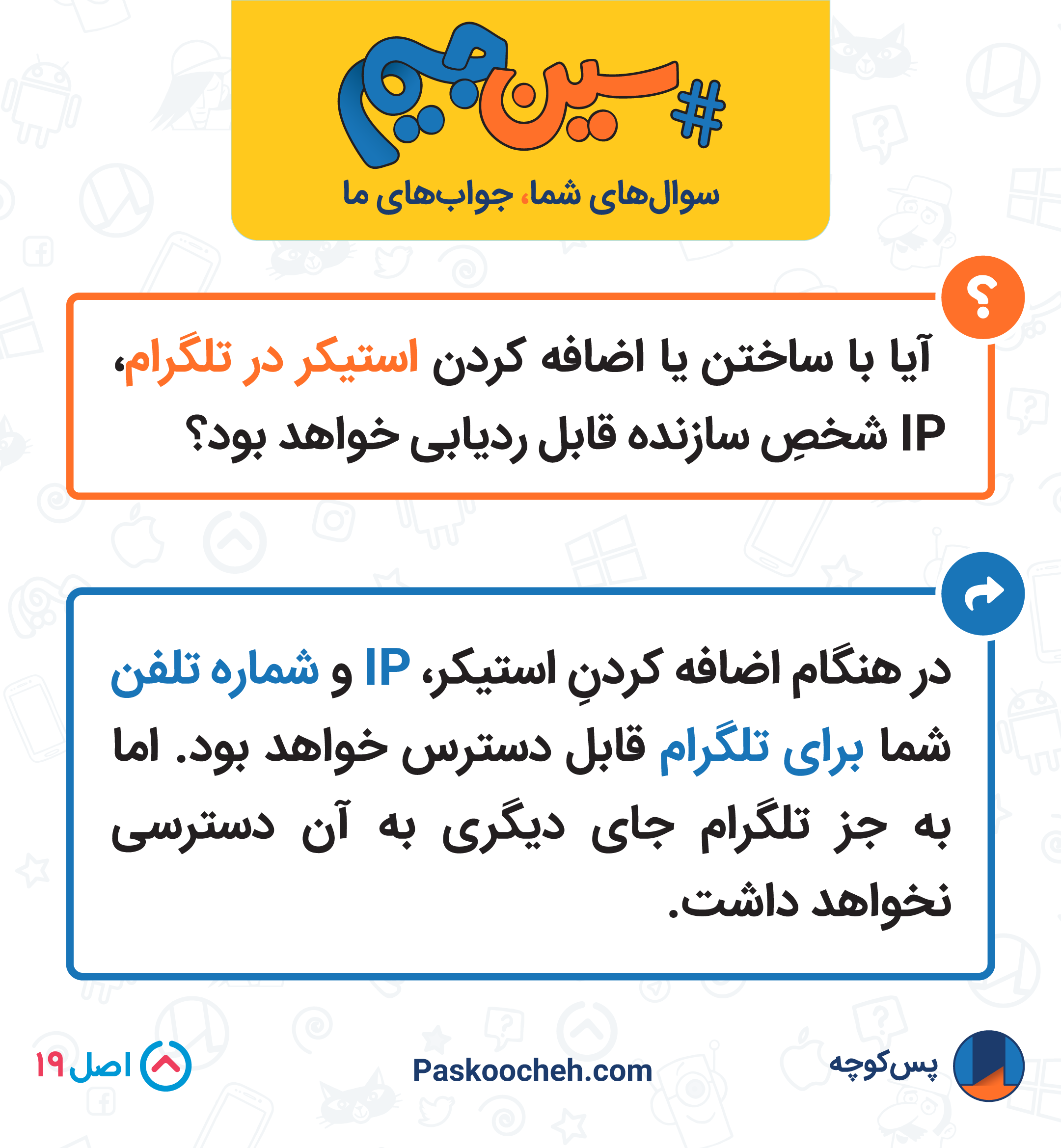 - سینجیم۱۹: آیا با ساختن یا اضافه کردن استیکر در تلگرام، IP شخصِ سازنده قابل ردیابی خواهد بود؟
