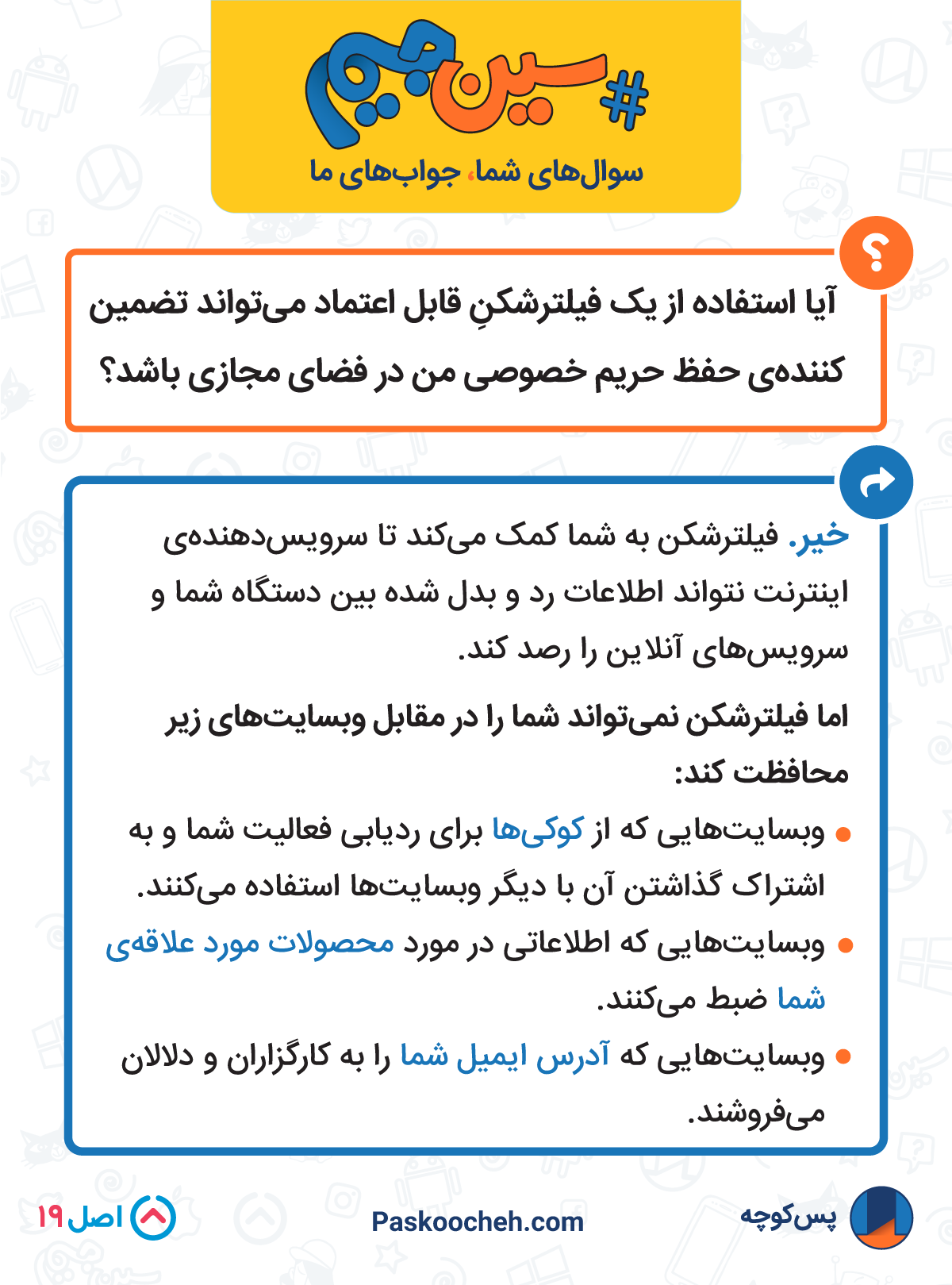 - سینجیم۲۶: آیا استفاده از یک فیلترشکنِ قابل اعتماد میتواند تضمین کنندهی حفظ حریم خصوصی من در فضای مجازی باشد؟