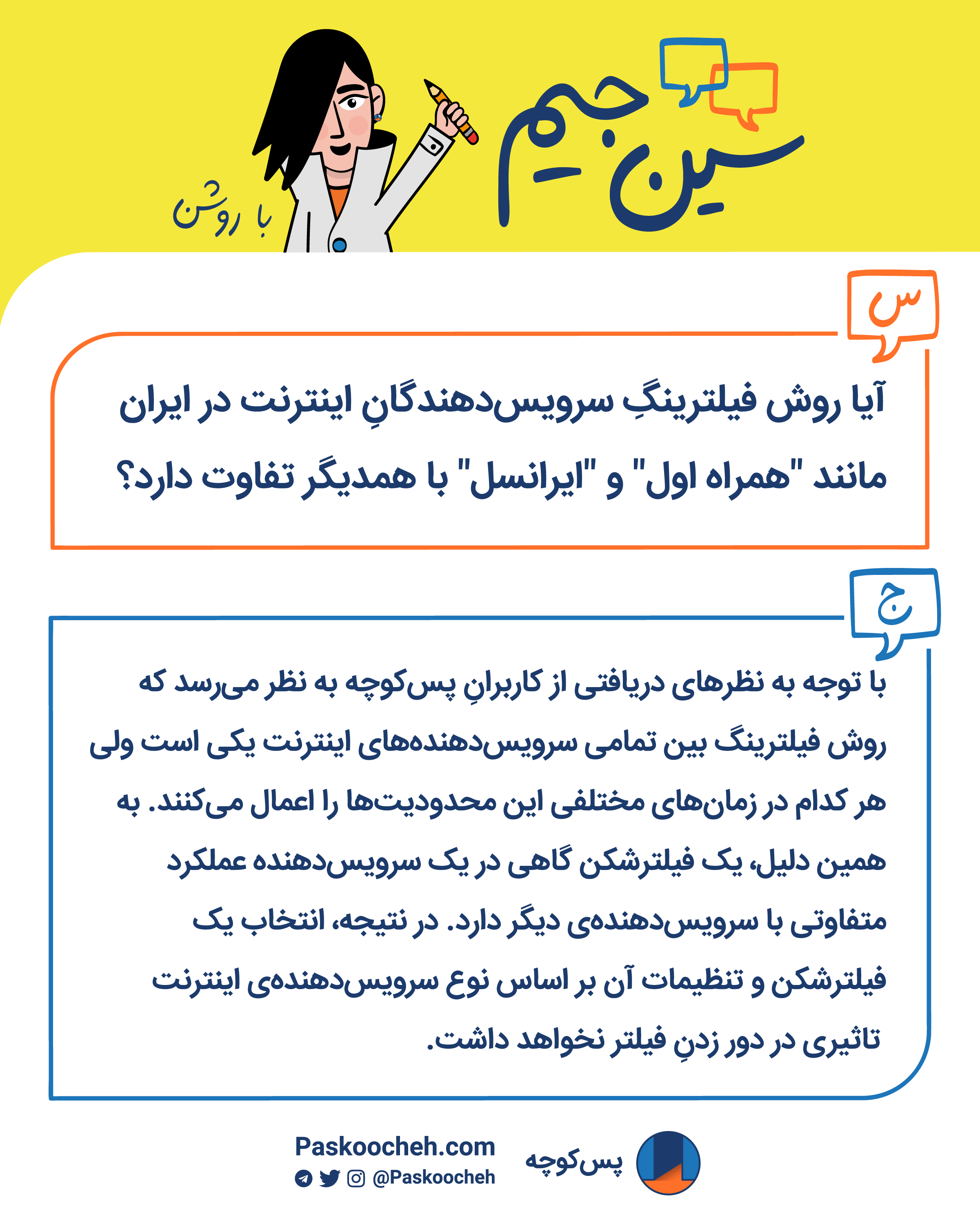 سینجیم ۳۰: آیا روش فیلترینگِ سرویسدهندگانِ اینترنت در ایران مانند "همراه اول" و "ایرانسل" با همدیگر تفاوت دارد؟