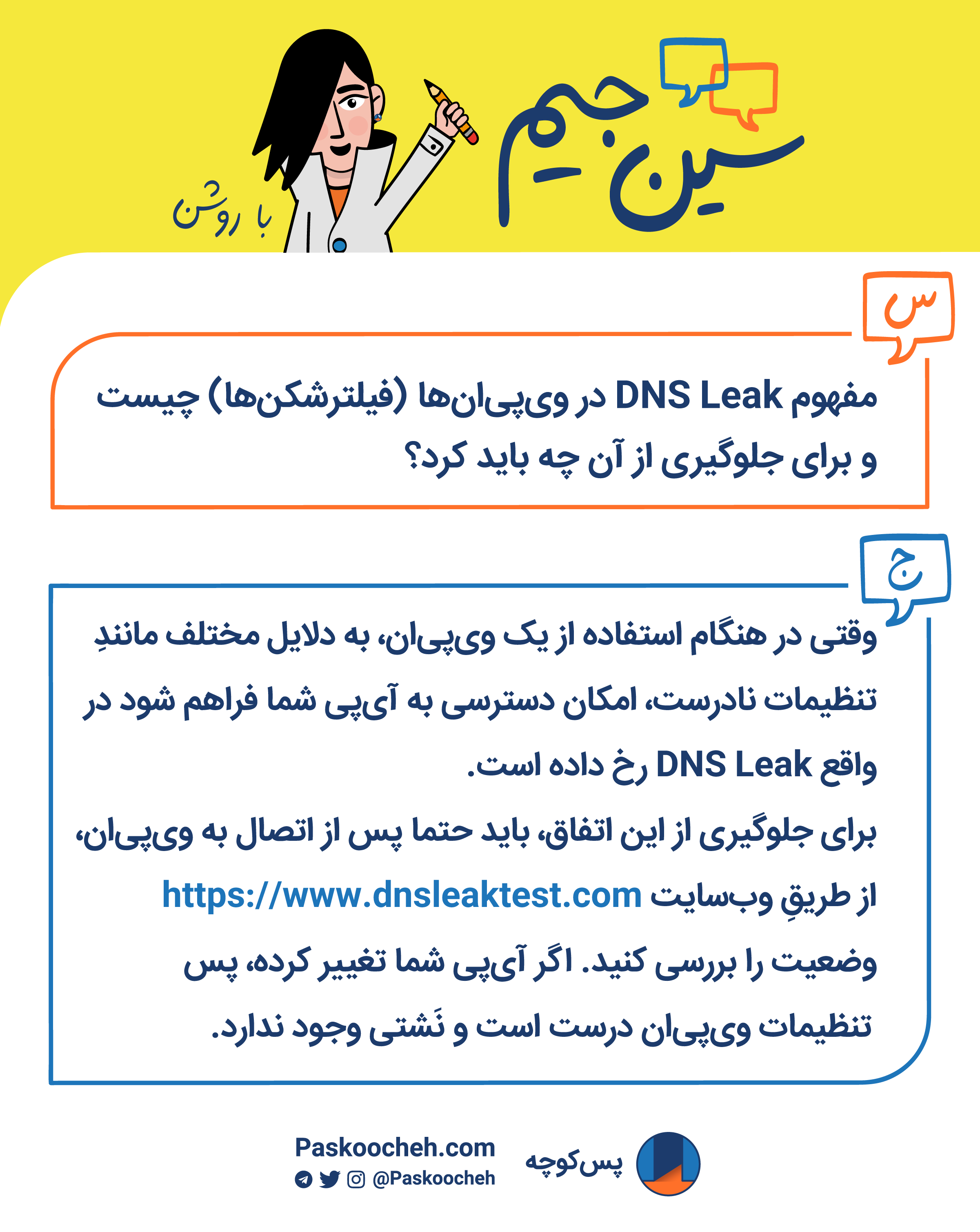 سینجیم ۳۴: مفهوم DNS Leak در ویپیانها (فیلترشکنها) چیست و برای جلوگیری از آن چه باید کرد؟