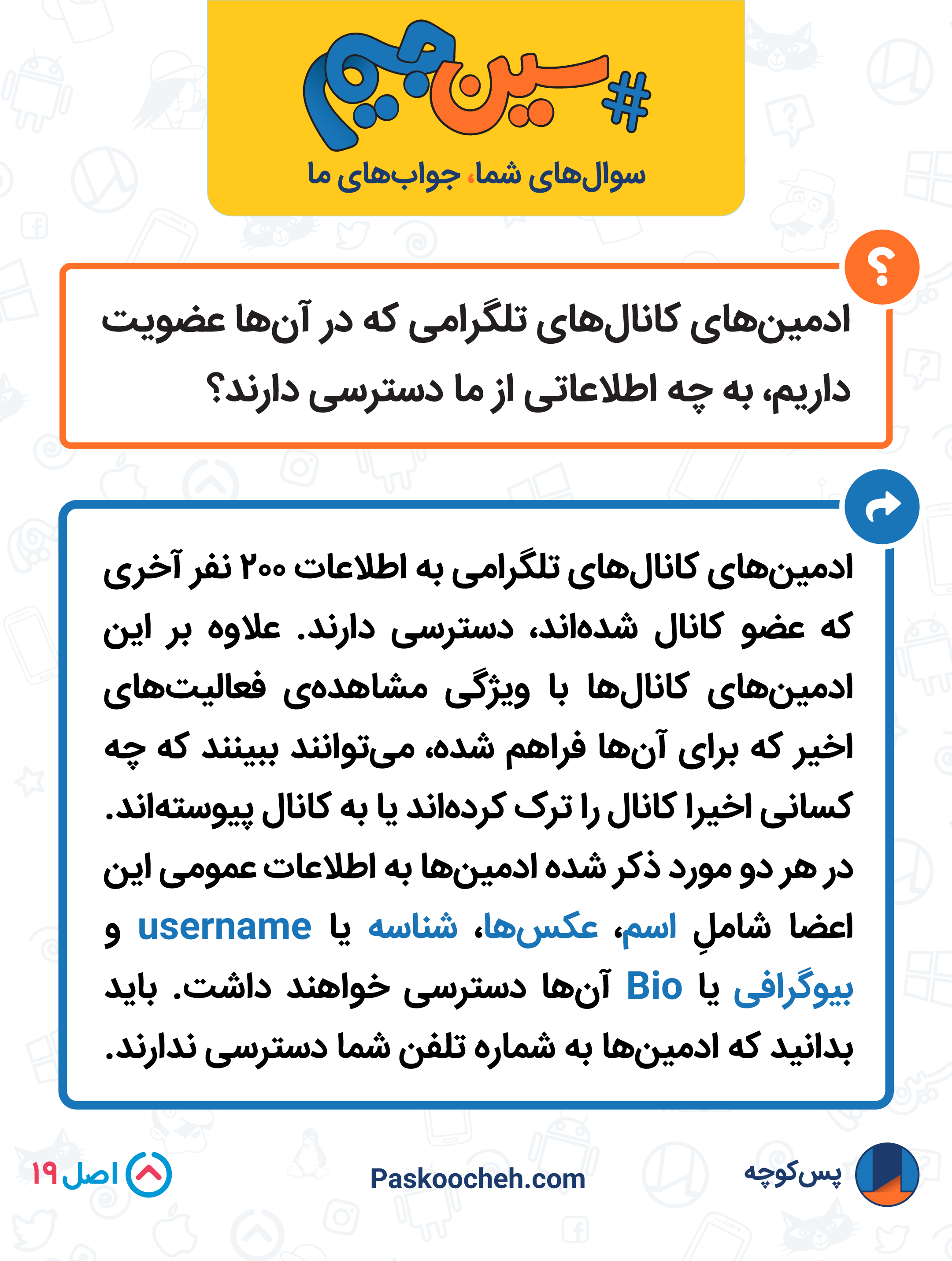 - سینجیم۲۱: ادمینهای کانالهای تلگرامی که در آنها عضویت داریم، به چه اطلاعاتی از ما دسترسی دارند؟