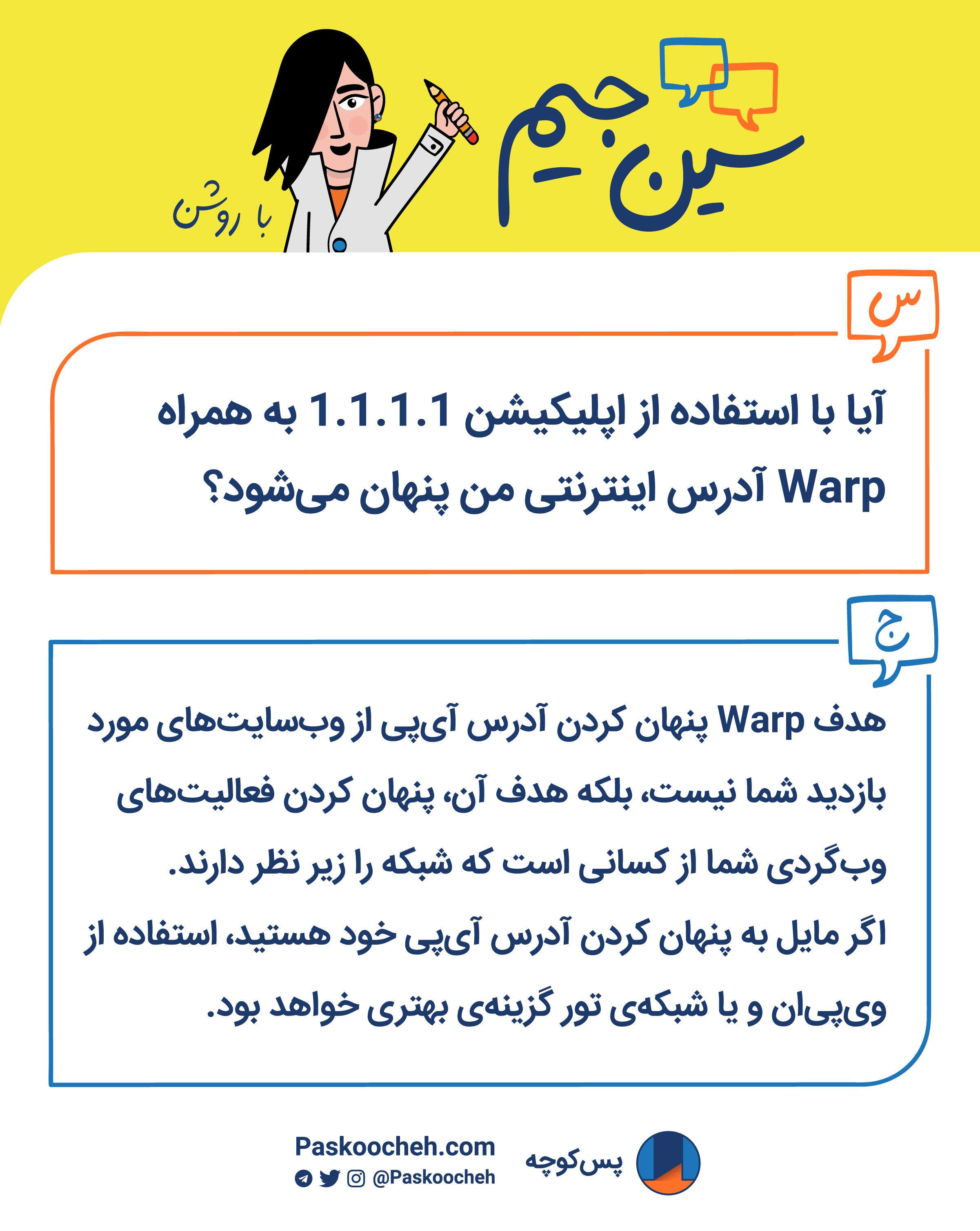 - سینجیم۲۹: آیا با استفاده از اپلیکیشن 1.1.1.1 به همراه Warp آدرس اینترنتی من پنهان میشود؟