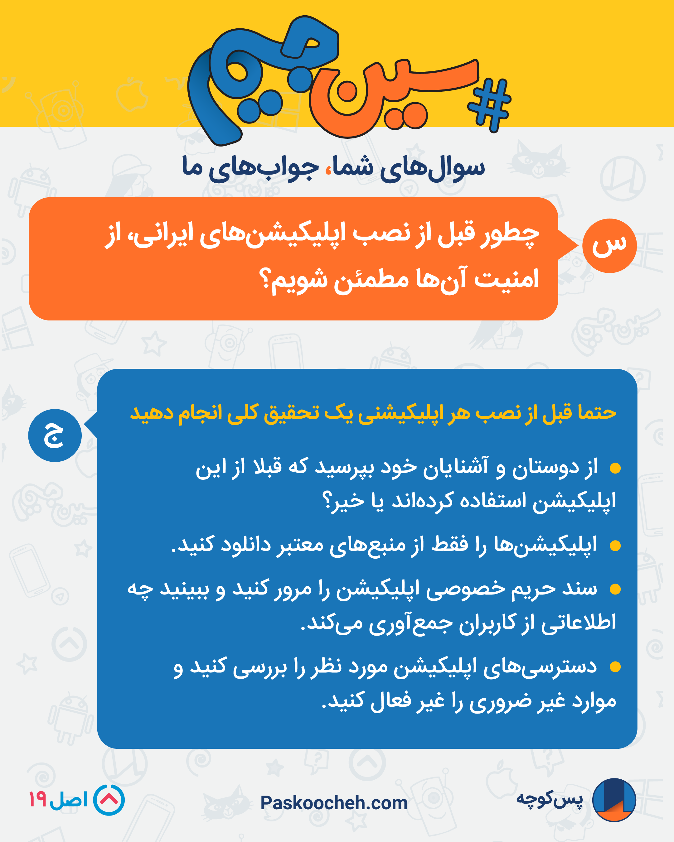 - سینجیم۱۴: چطور قبل از نصب اپلیکیشنهای ایرانی، از امنیت آنها مطمئن شویم؟