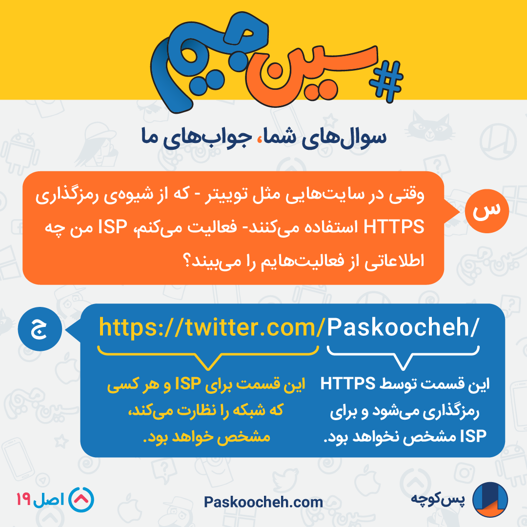 سینجیم ۲۷: آیا وقتی در وبسایتهایی که به صورت پیشفرض از HTTPS استفاده میکنند فعالیت میکنم، شرکت سرویسدهندهی اینترنت (ISP) به اطلاعات رد و بدل شده دسترسی خواهد داشت؟