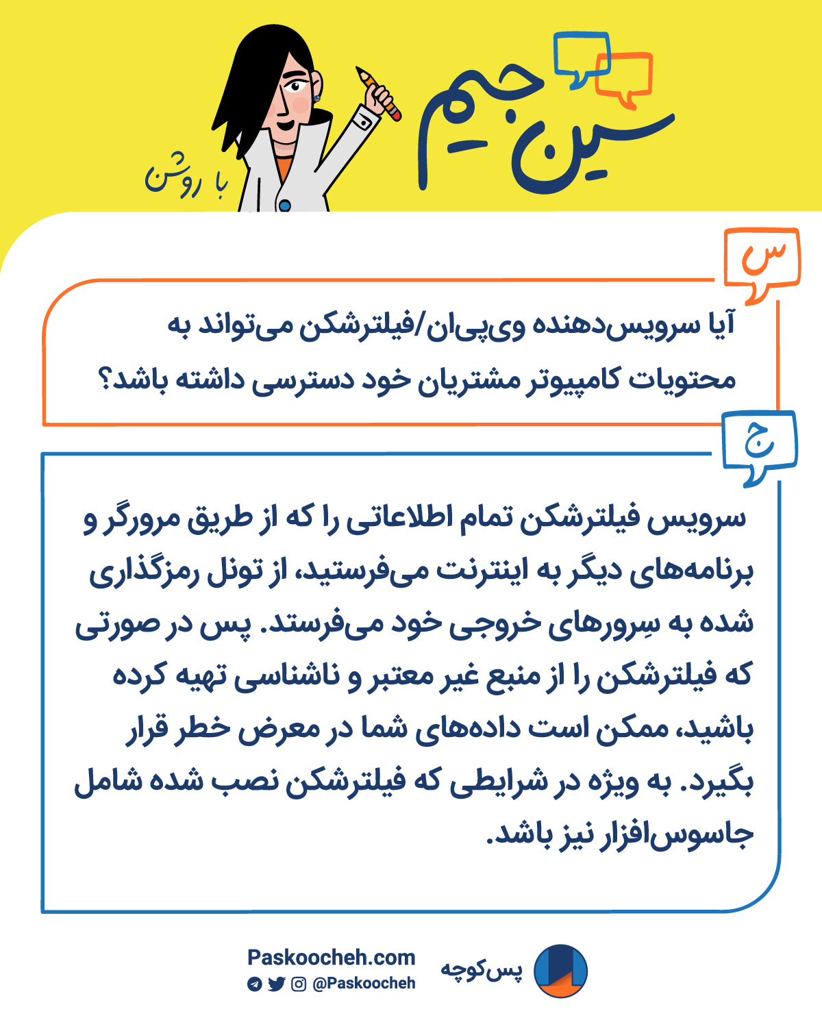 - سینجیم۴۰: آیا سرویسدهنده ویپیان/فیلترشکن میتواند به محتویات کامپیوتر مشتریان خود دسترسی داشته باشد؟