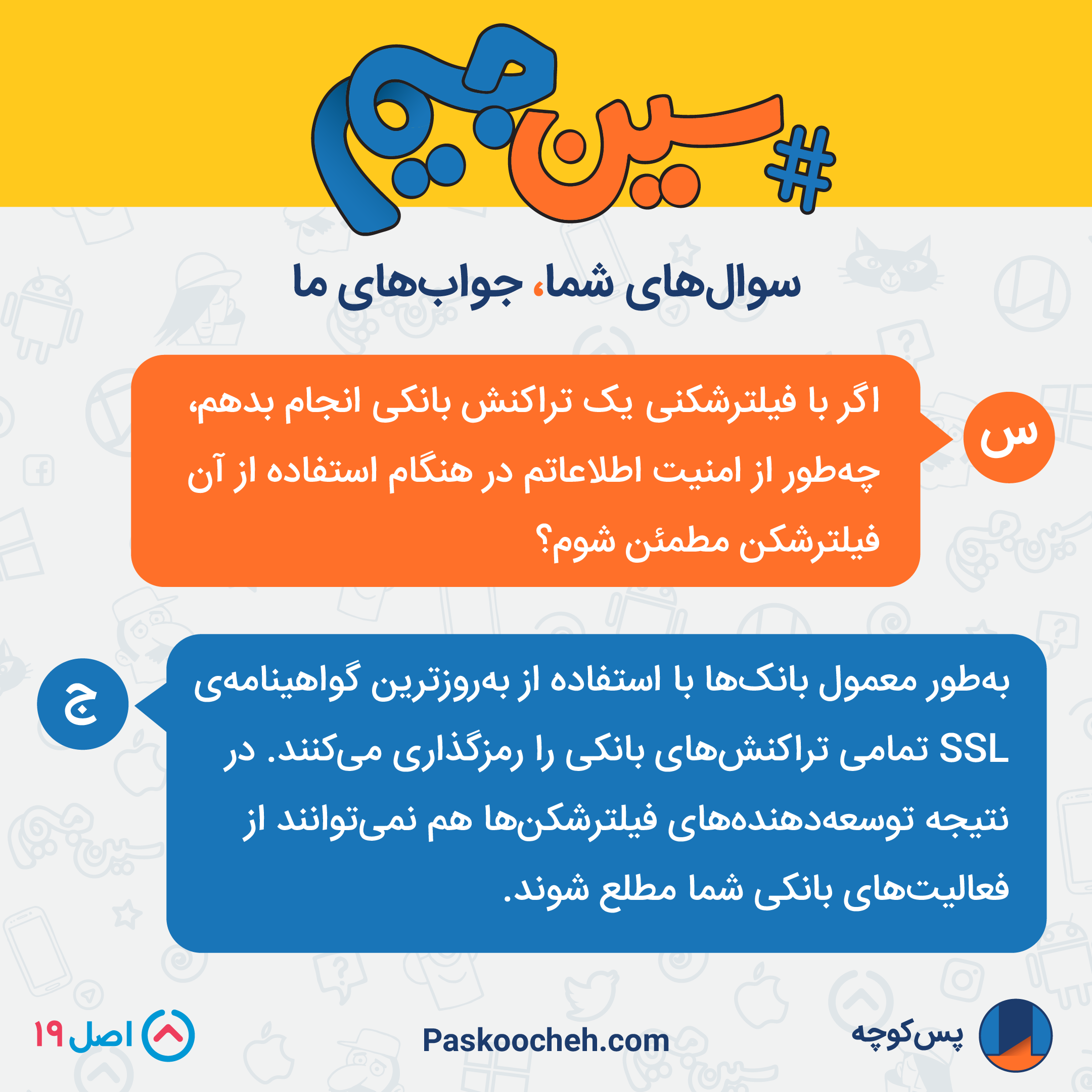 - سینجیم۱: اگر با فیلترشکنی یک تراکنش بانکی انجام بدهم، چهطور از امنیت اطلاعاتم در هنگام استفاده از آن فیلترشکن مطمئن شوم؟