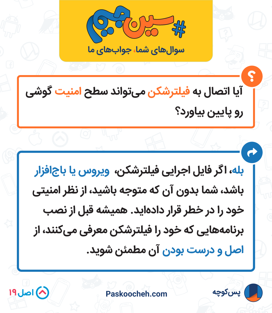 - سینجیم۱۸: آیا اتصال به فیلترشکن میتواند سطح امنیت گوشی را پایین بیاورد؟