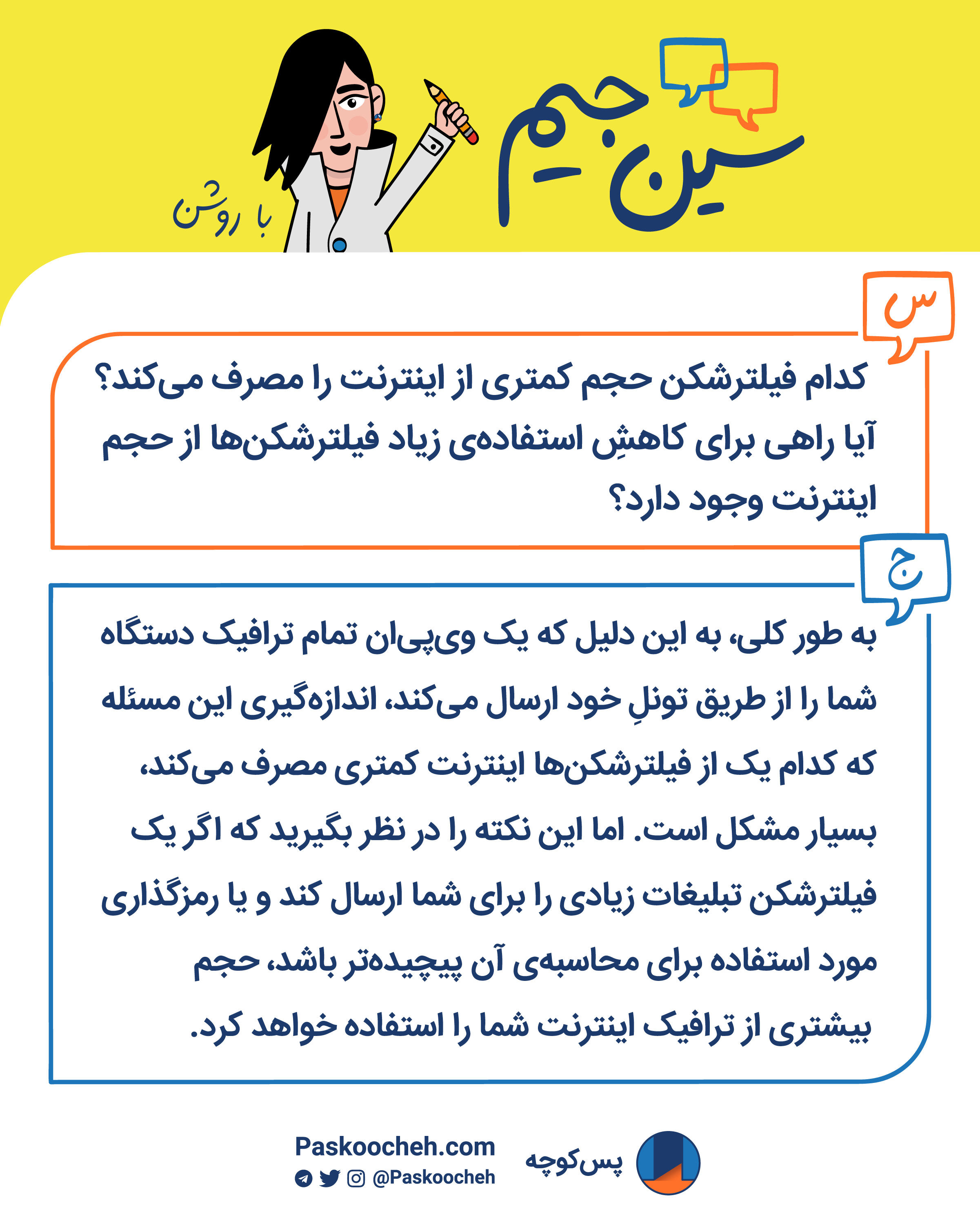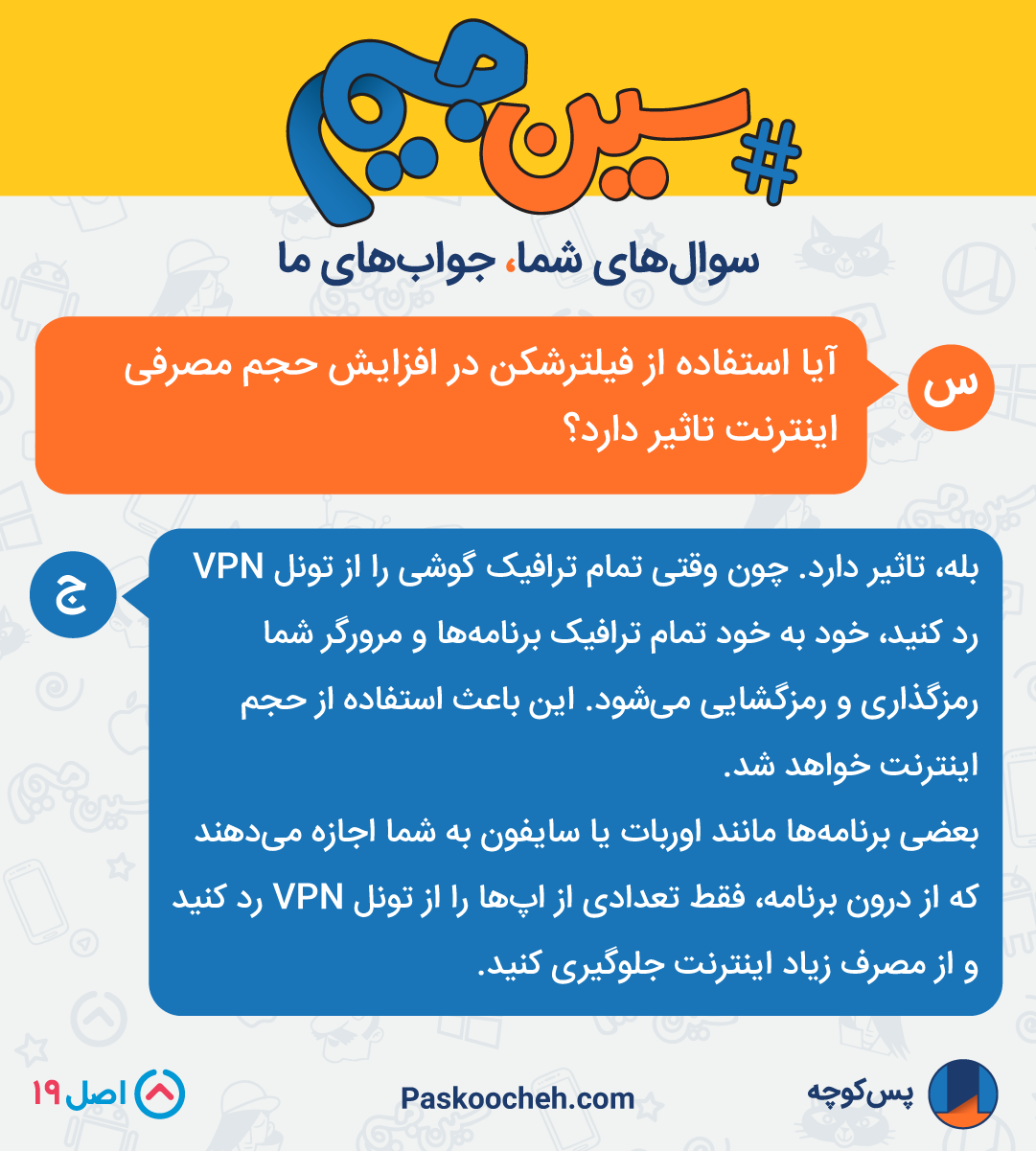 - سینجیم۵: آیا استفاده از فیلترشکن در افزایش حجم مصرفی اینترنت تاثیر دارد؟