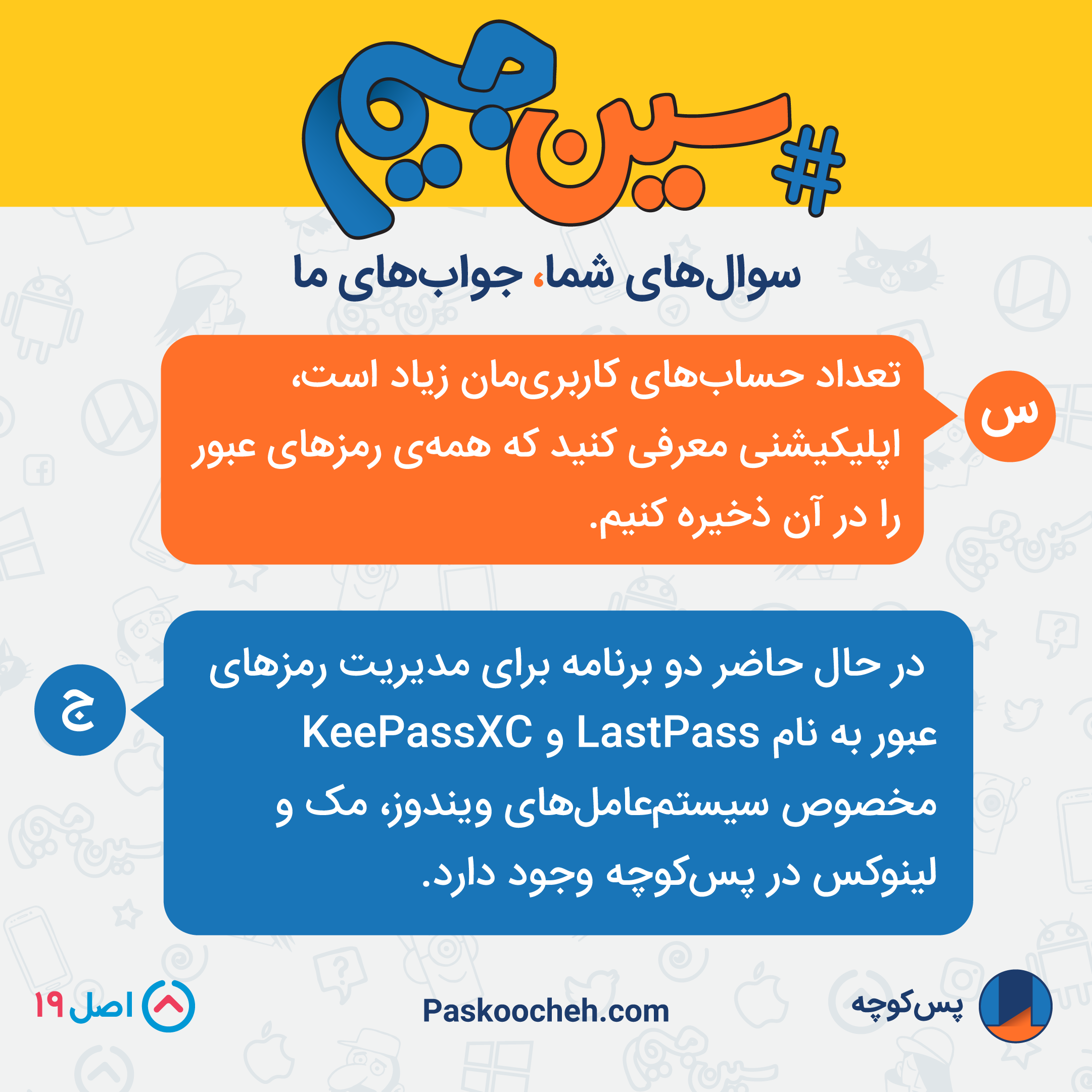 - سینجیم۷:. تعداد حسابهای کاربریمان زیاد است، اپلیکیشنی معرفی کنید که همهی رمزهای عبور را در آن حفظ کنیم