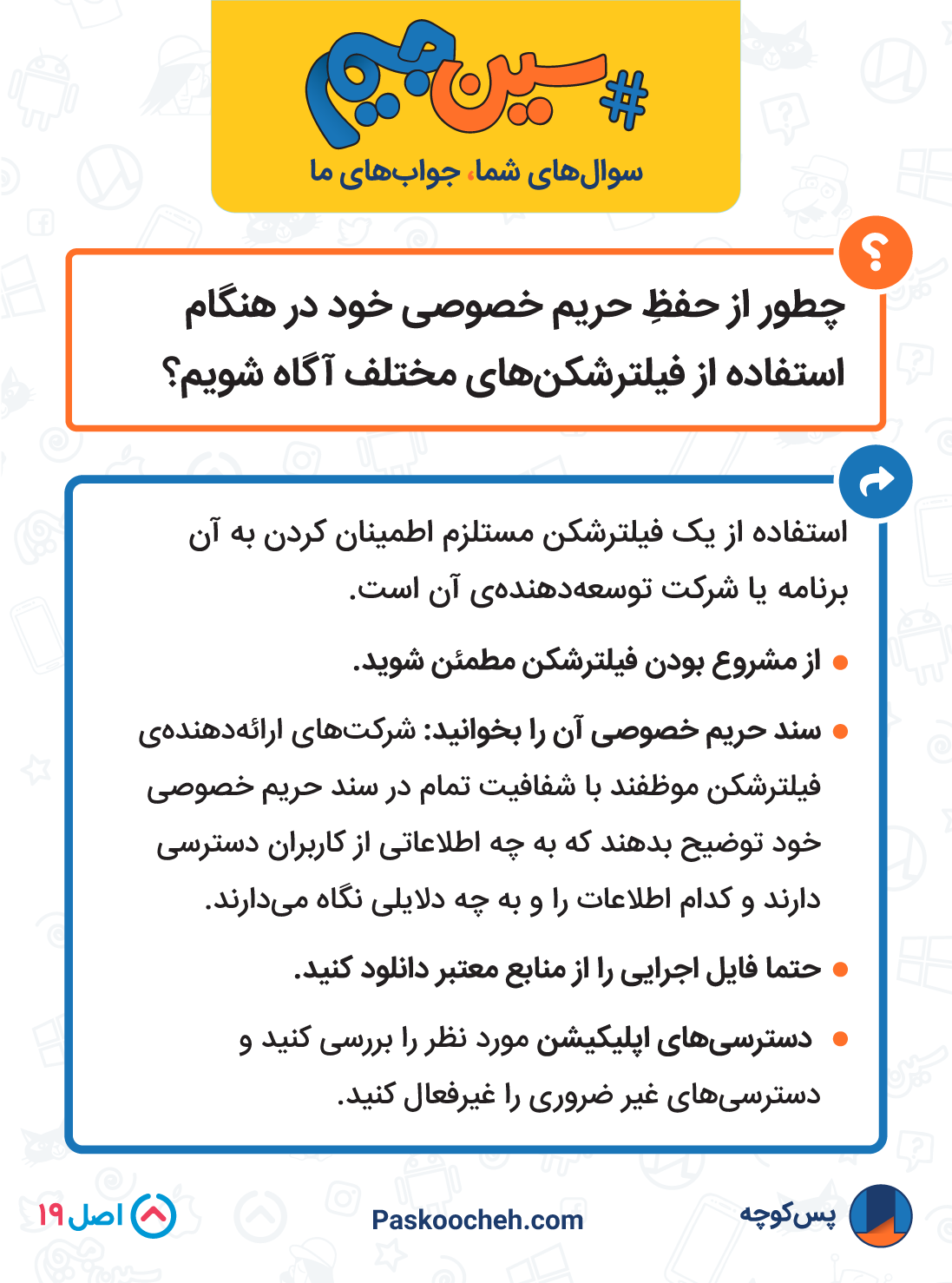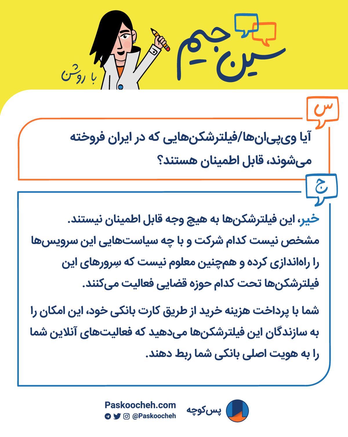 - سینجیم۲۵: چطور از حفظ حریم خصوصی خود در هنگام استفاده از فیلترشکنهای مختلف آگاه شویم؟ شاید اطلاعات ما را بفروشند!