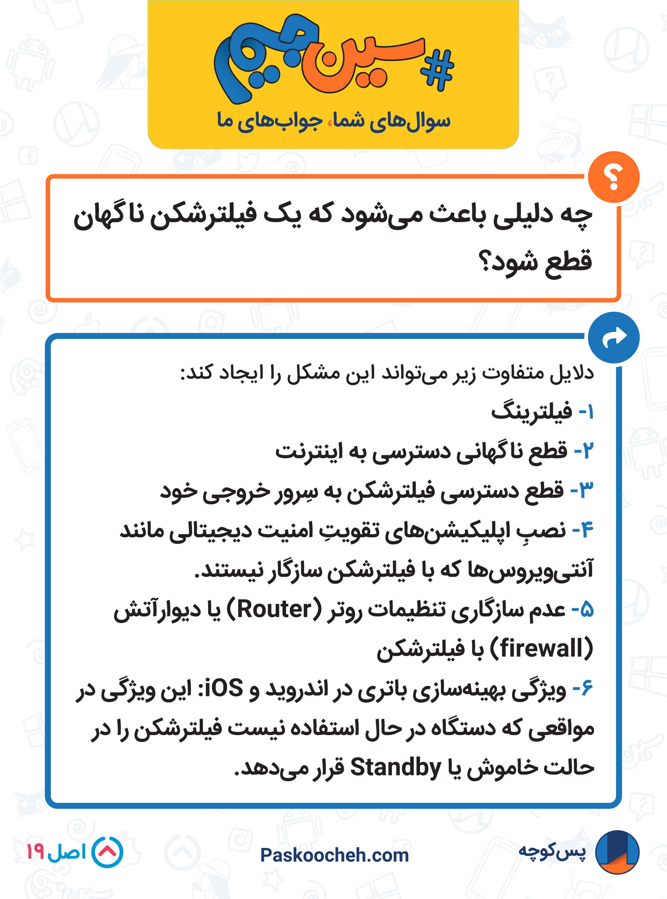 - سینجیم۲۳: چه دلیلی باعث میشود که یک فیلترشکن ناگهان قطع شود؟