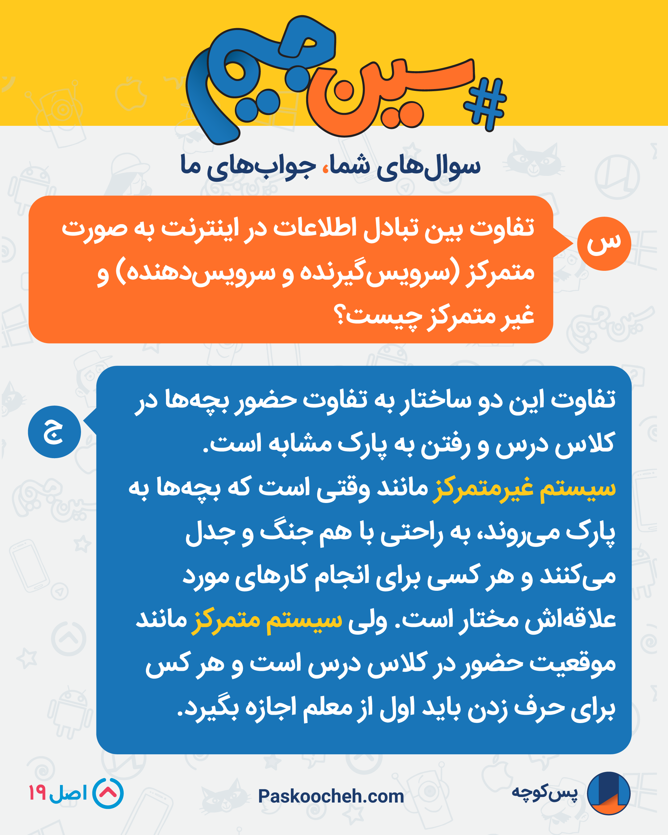 - سینجیم۱۳: فرق بین تبادل اطلاعات در اینترنت به صورت متمرکز و غیر متمرکز چیست؟