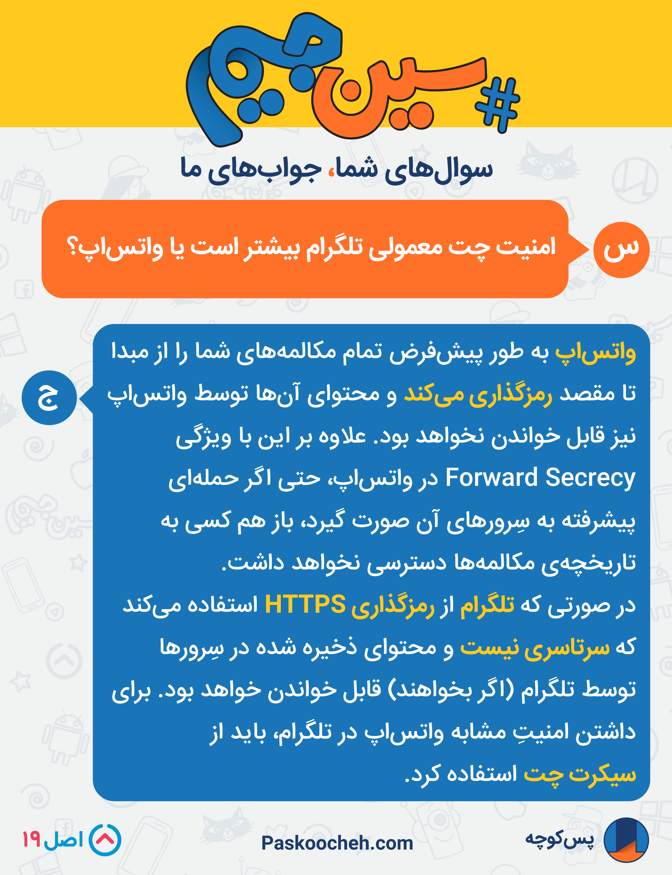 - سینجیم۱۰: امنیت چت معمولی تلگرام بیشتر است یا واتساپ؟