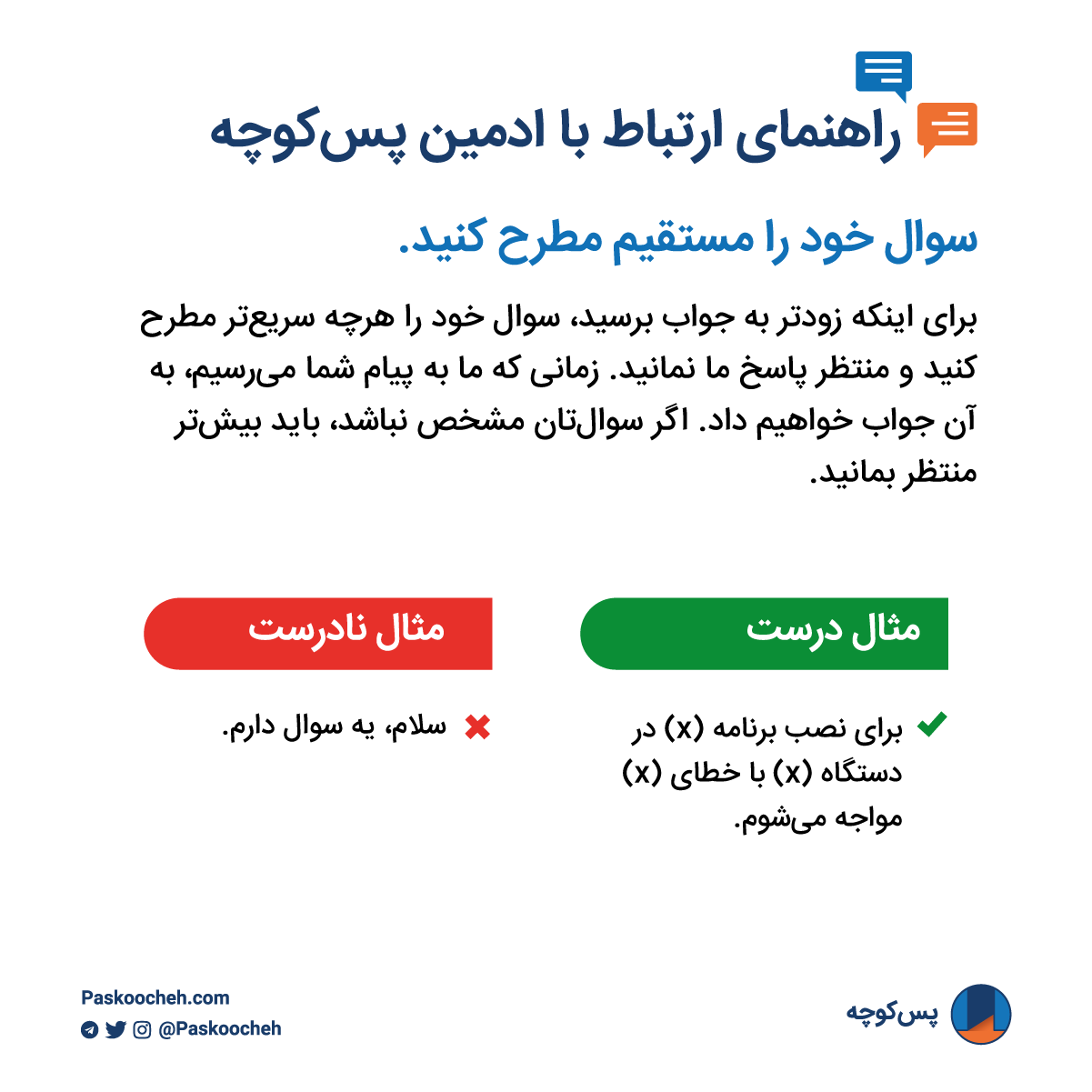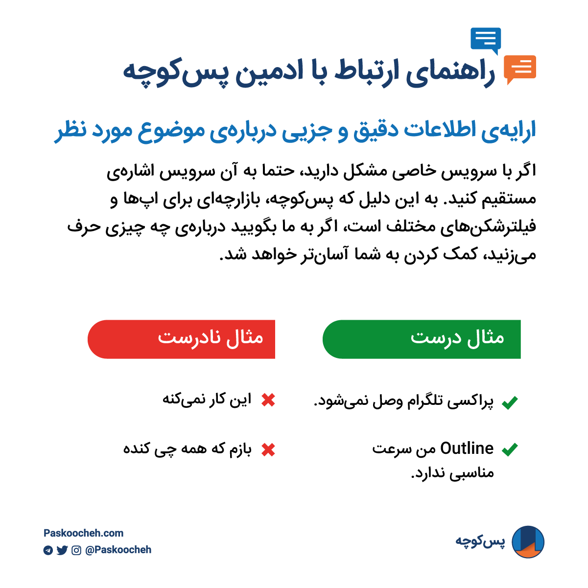 راهنمای ارتباط با ادمین پسکوچه