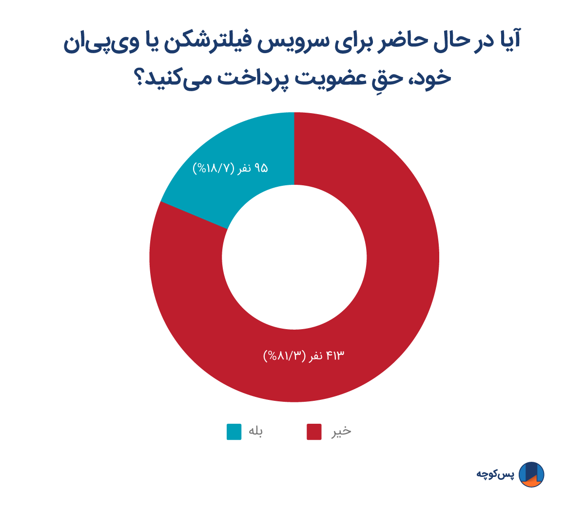 تیم پسکوچه به صورت مستمر با همکاری کاربران خود در تلاش است تا راههای کاربردی برای رفع این مشکلات پیدا کند. به همین دلیل حدود دو ماه پیش نظرخواهی دربارهی ارز دیجیتال در ایران را از طریق شبکههای اجتماعی پسکوچه، شامل تلگرام، توییتر، فیسبوک، اینستاگرام و فهرست ایمیلی، منتشر کردیم که در مجموع، پانصد و دو کاربر در این نظرخواهی شرکت کردند. نتایج این نظرخواهی به طور قطع به ما کمک خواهد کرد تا بتوانیم پلتفرم جدیدی را برای ایرانیان طراحی کنیم. پلتفرمی که اجازهی استفاده از روشهای پرداخت جایگزین خرید فیلترشکنها را به آنها خواهد داد.