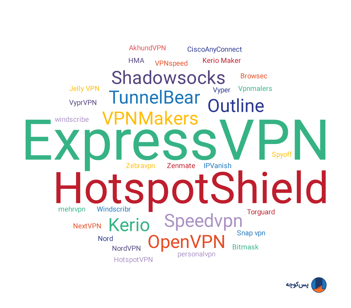 پرسش بعدی از کاربران برای این بود تا مشخص کنند شرکتکنندگان از چه فیلترشکنِ غیر رایگانی استفاده میکنند. ابرواژهای که از پاسخهای آنها درست کردهایم نشاندهندهی پرکاربردترین ویپیانهای غیر رایگانی است که شرکتکنندگانِ این نظرخواهی استفاده میکنند.