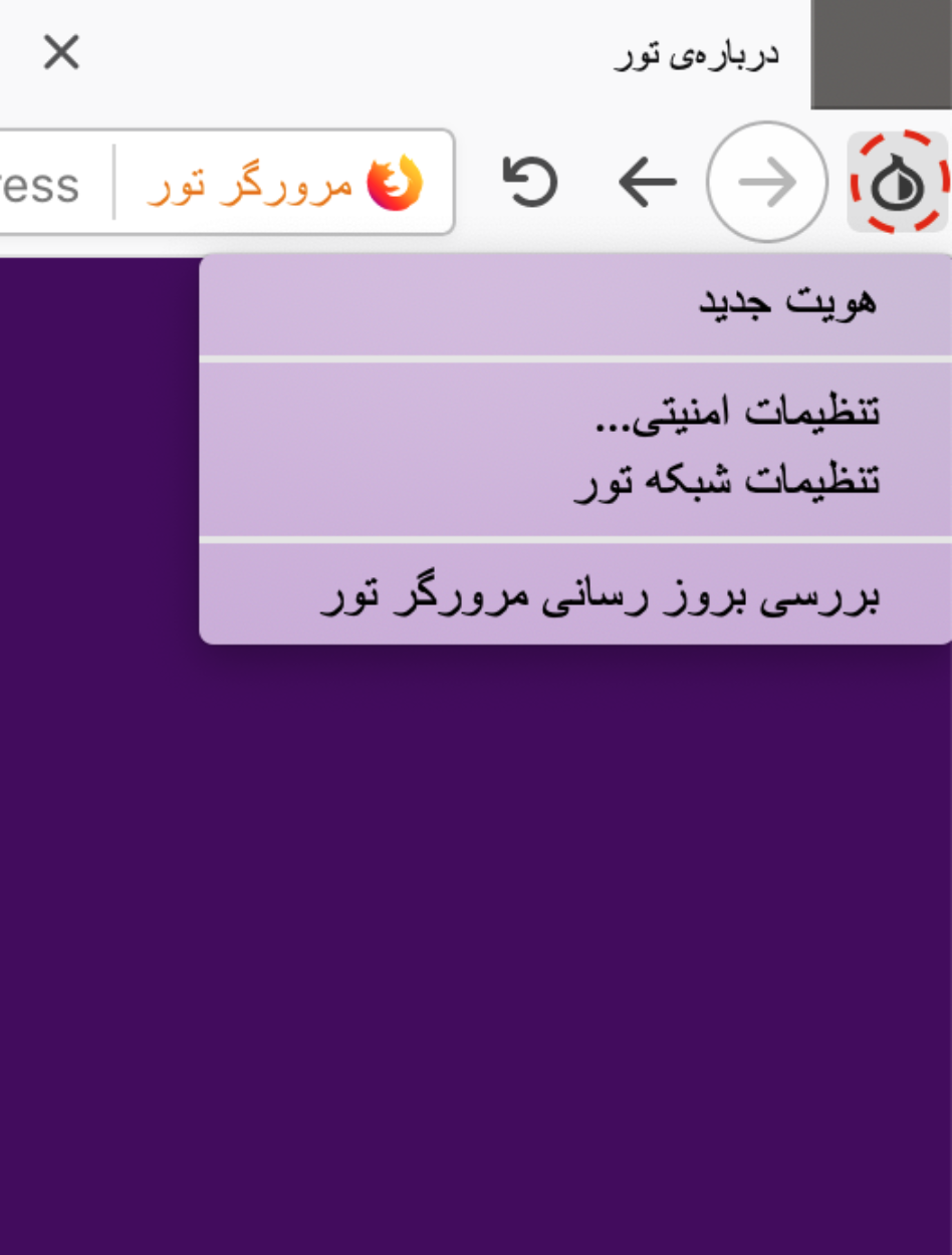 برای دسترسی به تنظیمات تور کافی است روی لوگوی پیازی در بالای سمت راستِ صفحه کلیک کنید.