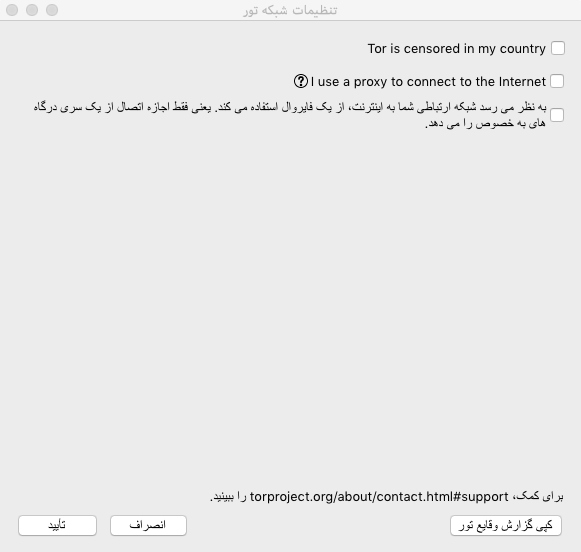 ۲.۳- تنظیماتِ شبکهی تور