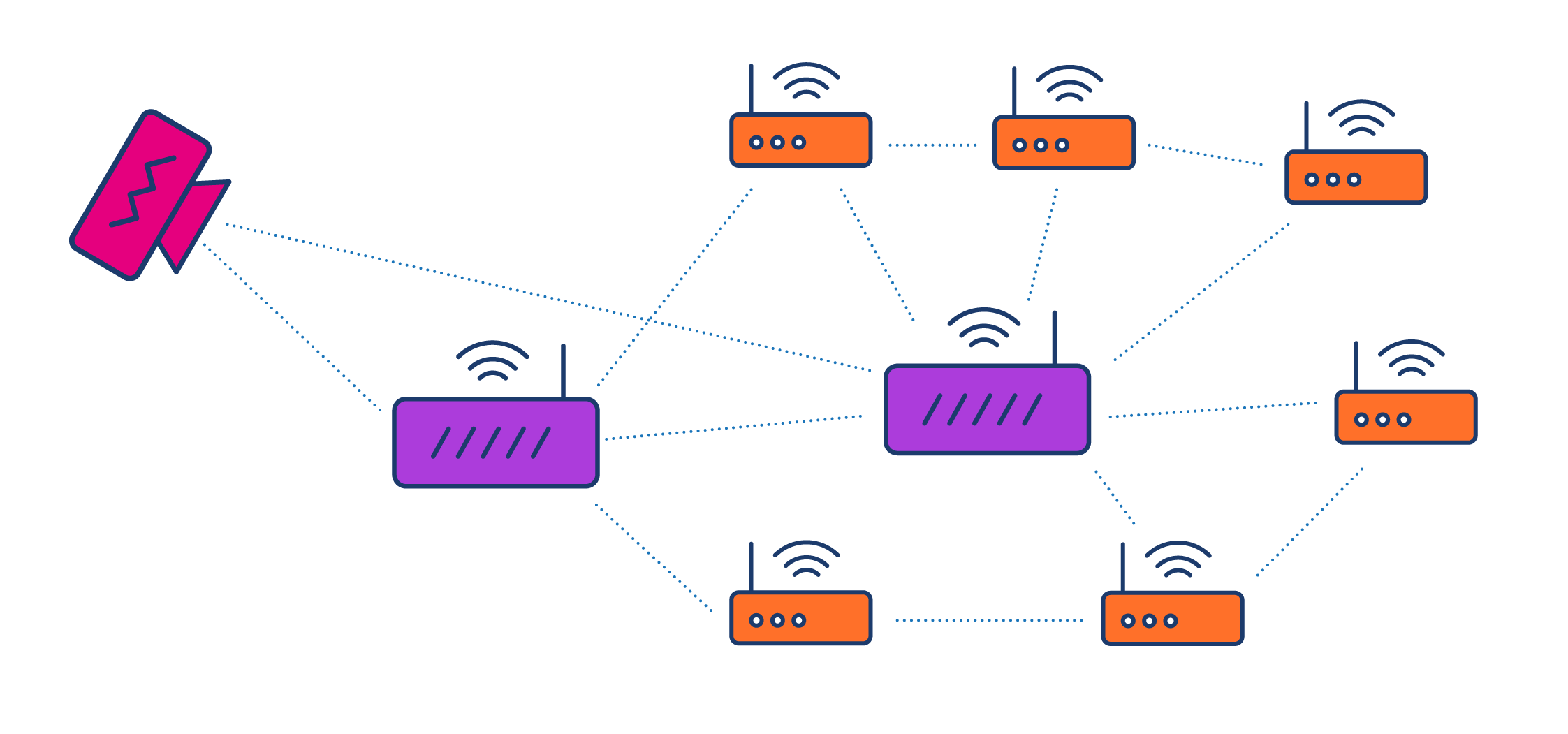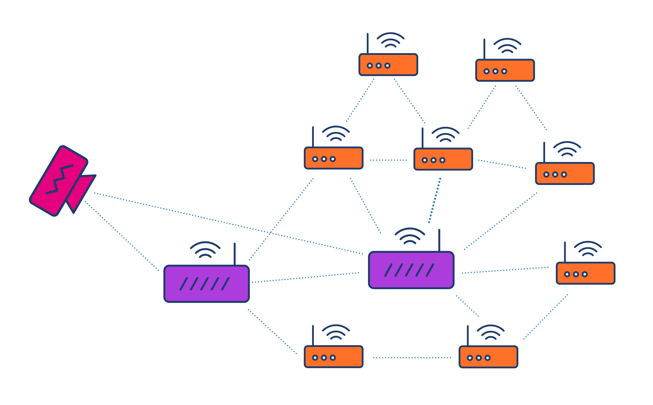 نقطههای استاندارد برای دسترسی، مانند مدلی که ممکن است در خانه داشته باشید، میتواند به راحتی با کامپیوتر و تلفن همراه شما در ارتباط باشد، اما آنها به راحتی نمیتوانند با روترهای دیگر تبادل اطلاعات کنند.