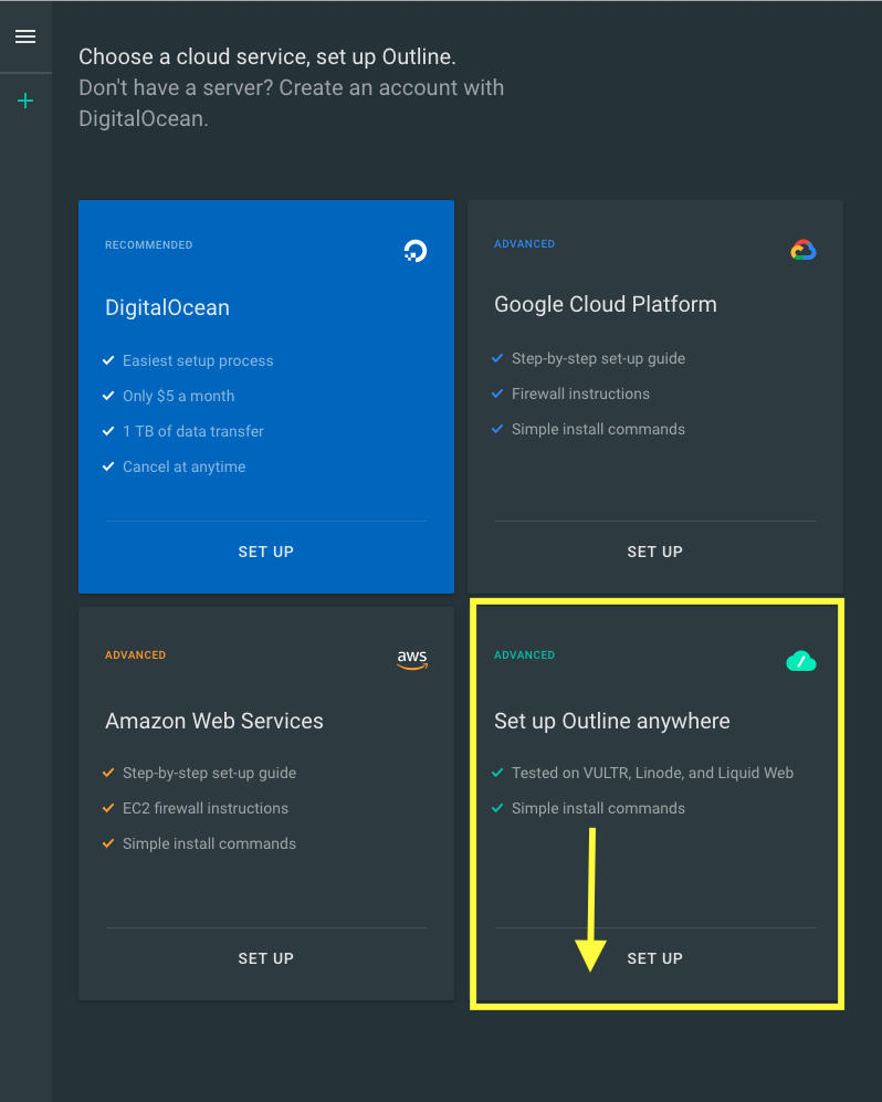 این راهنما راهاندازی سِروِر Outline با سرویس ابری DigitalOcean و سرور اختصاصی مورد علاقه را به شما یاد میدهد.