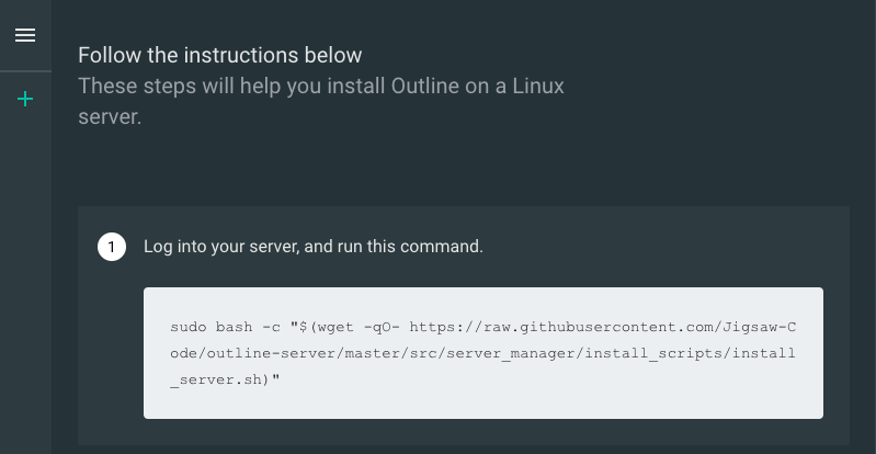 bash -c "$(wget -qO- https://raw.githubusercontent.com/Jigsaw-Code/outline-server/master/src/server_manager/install_scripts/install_server.sh)"