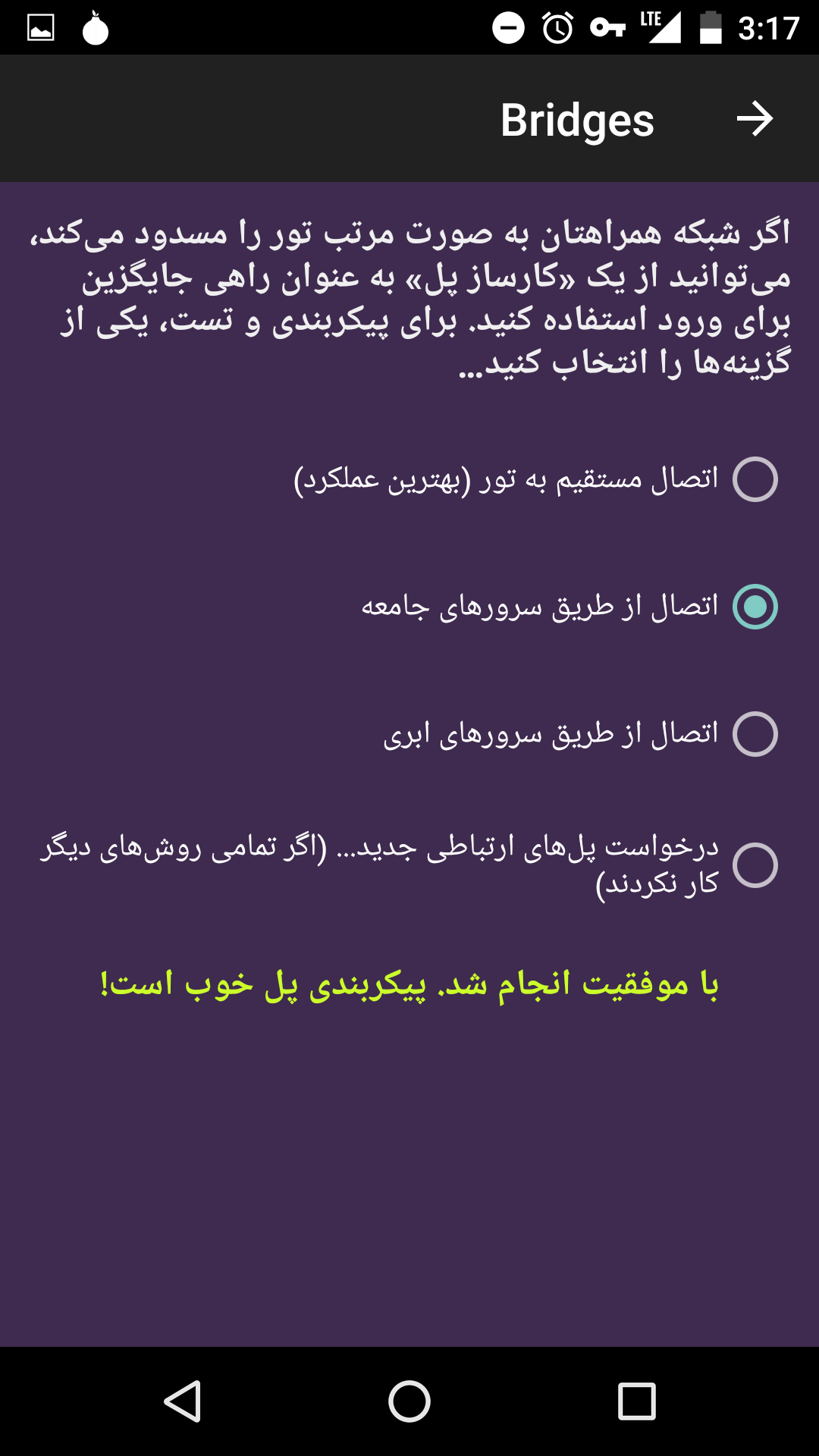 پس از طی این مراحل اگر هنوز برای اتصال به شبکهی تور مشکل داشتید، از پلها (Bridges) استفاده کنید.